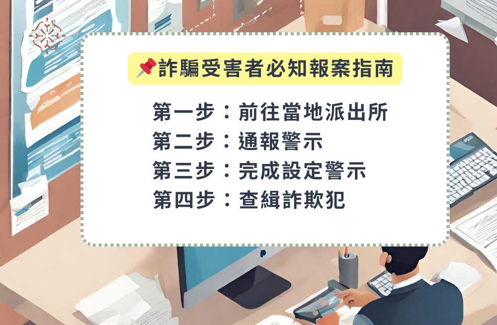 面對詐騙案,您需要放下緊張與不安,了解正確詐騙報案流程,冷靜地向司法警察說明,讓事情盡快解決。